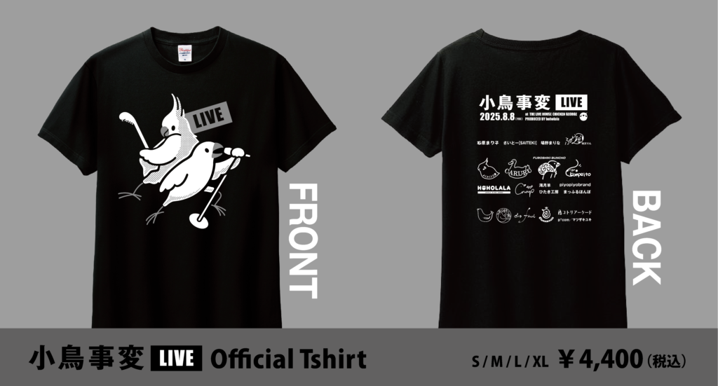小鳥事変LIVE Tシャツ(税込4,400円・S / M / L / XL)