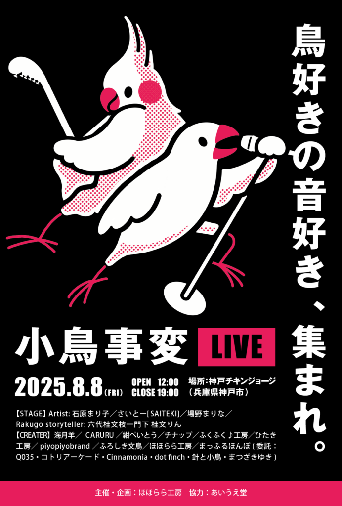 ライブハウスで開催する、歌って踊れて小鳥グッズが買える面白イベントです!